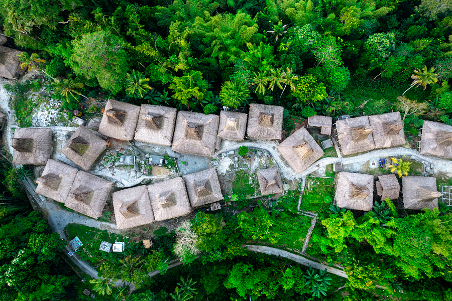 Vasici Tarung in Praijing, skriti na vrhu gričev, sta popolna primera tega, kar dela otok Sumba tako posebnega. Že sam pristop k njima ponuja čudovite razglede na riževa polja naokrog, a prava čarobnost se začne, ko se znajdeš med tradicionalnimi hišami. Sredi vasi ležijo mogočne kamnite grobnice prednikov, okrog njih pa se dvigajo hiše z izjemno visokimi, stožčastimi strehami iz trave — nekatere merijo kar 20 do 30 metrov visoko. Te strehe niso le arhitekturni čudež, temveč nosijo simboliko treh svetov: zgornjega, kjer prebivajo duhovi; srednjega, namenjenega ljudem in spodnjega, kjer imajo svoje mesto živali.