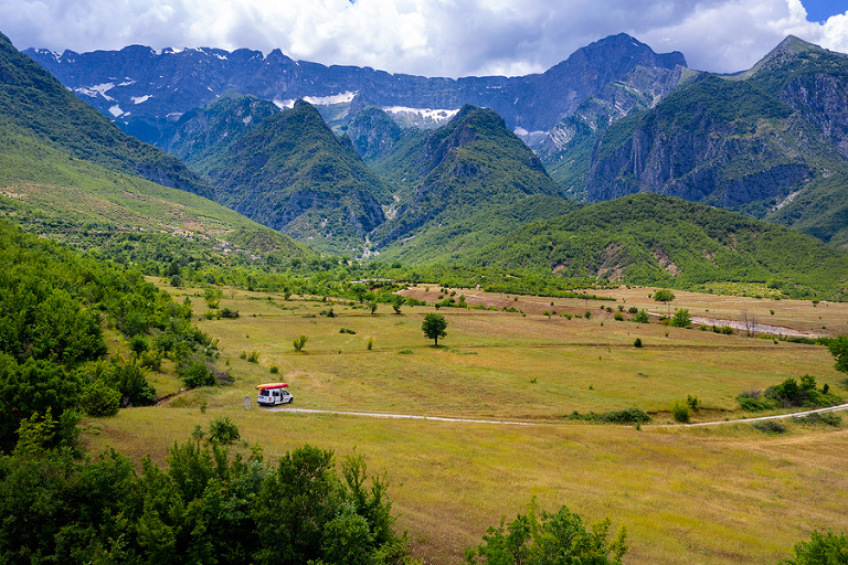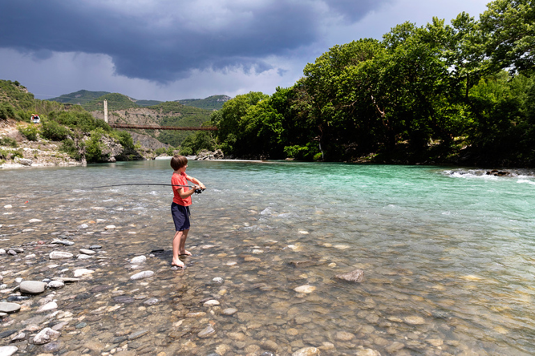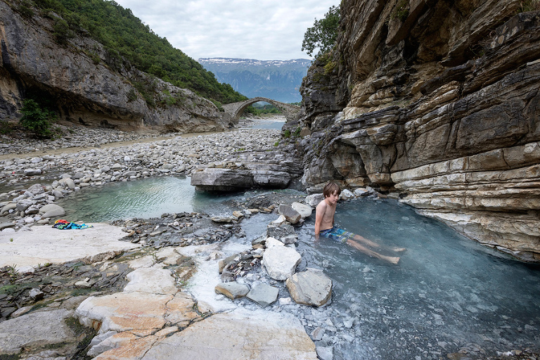 Po veslaški super dogodivščini na Prespanskem jezeru, o katerem sem pisal v prejšnjem postu, je bil čas za pot naprej. Mimo Korçë, kjer smo prespali pri super prijaznih domačinih lokalnega kampa in hotela v enem, smo se počasi podali na jug. Cesta, ki teče vzporedno z grško mejo, ponuja lepe prizore lokalnega življenja v Albaniji, odmaknjene od vrveža turističnih središč. Ko se je cesta že skoraj dotaknila grške meje, pa so se pred nami odprli fantastični prizori na reko Vjosë, edino nezajezeno reko balkanskega polotoka. Borbo za njen obstanek v prvotni obliki bijejo tudi naši @balkanriverdefence bojevniki. 🙂 Ekipa, upam, da vam uspe. 😉 Naslednja postojanka na naši poti so bili topli vrelci Bënja, ki so ob našem prihodu ponujali bolj klavrno podobo. Zaradi hudega naliva, ki se je končal tik pred našim prihodom, je bila v soteski Lengarica, ki se začne tik ob vrelcih, prava norija. Zaradi poplavnega vala je bilo v soteski ujetih kar nekaj turistov in hvala bogu se je noro reševanje zaključilo brez zapletov. A dež je prinesel tudi nekaj dobrih stvari. Ljudje so odšli in tople vrelce smo tisti večer in naslednje jutro delili le z nekaj nadebudneži, s katerimi smo si delili tudi bližnji travnik, kjer smo prespali tisto noč. Skratka, po vseh veslanjih so topli vrelci pasali kot že dolgo ne. In tudi kulisa celotne okolice ni bila prav nič napačna. 😉