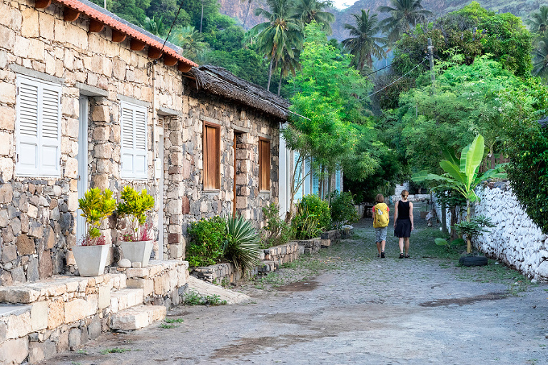 Če ne najlepša, pa zagotovo z najbolj karibskim pridihom – vasica Cidade Velha na otoku Santiago, ki leži le dobrih 10 kilometrov zahodno od glavnega mesta Praia, je vsekakor vredna ogleda. Ko sem doma delal okviren plan potovanja po Zelenortskih otokih, je bil prvotni plan, da vse noči na otoku Santiago preživimo v Cidade Velha. Vasica je res simpatična in nekaj posebnega, z nekaj res lepimi prenočišči in taki kraji so nam običajno všeč – sploh ker je vasica še kako živa, polna ribičev ob dnevnih opravilih, otrok, ki skačejo naokrog in gospa ob vsakdanjih opravilih. A ker smo potem na otoku Santiago ostali le dobra dva dneva, smo Cidade Velha obiskali prvo jutro po prihodu na otok, ko smo bili zaradi časovne razlike skoraj že sredi noči že polni energije. 🙂 Cidade Velha ni le neka vasica na koncu zaprašene ceste. Gre za prvo naselbino na celotnem Zelenortskem otočju iz leta 1462 in hkrati nekdanjo prestolnico otočja. Ker gre za posebno zgodbo, jo najdemo tudi na UNESCOVEM zaščitnem seznamu. Nad vasico kraljuje trdnjava São Filipe, s katere se odpirajo lepi pogledi na razčlenjeno obalo zahodnega dela otoka Santiago. Najstarejša cesta z imenom “Rua Banana” in steber “Pelourinho” sta glavni znamenitosti vasice. Če o cesti sami nimam kaj dodati, pa nekaj o stebru – steber je bil simbol mestne oblasti in simbol suženjstva – vsi sužnji, ki so se tako ali drugače pritoževali, so bili ob navedenem stebru tudi usmrčeni. Skratka, še en opomin na grozote belih gospodarjev. 🙁