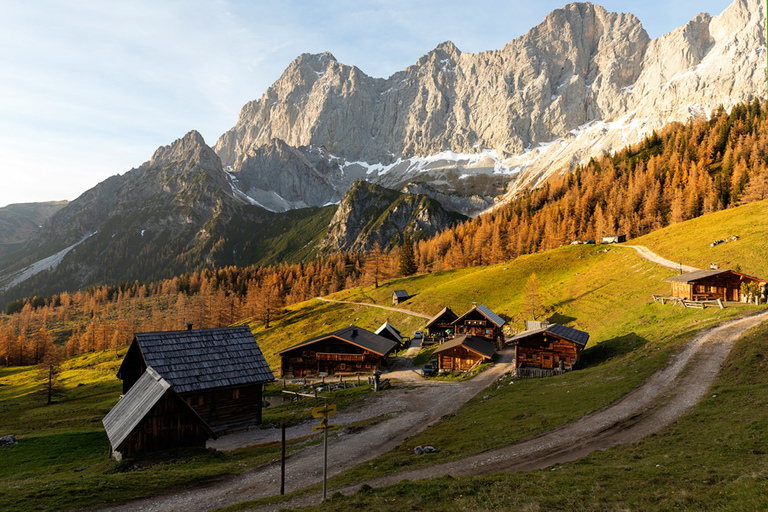 Če sem ob jezeru Duisitzkarsee še ujel tiste prave jesenske barve (o pohodu do tega čudovitega jezera nekaj več TU), pa je bila pod pod masivom Dachstein zgodba za letos večinoma že zaključena. Na plačljivo cesto, ki pelje do postaje gondole, ki vas lahko zapelje vse do vrha masiva, sem prišel v nedeljo in zgodba je bila skoraj podobna lepim jesenskim dnevom na našem Vršiču in noriji, ki vlada na njem. Gužva je bila tudi tu neverjetna, v avtih in ob avtih in v vrsti za gondolo pa vse od ultra pohodnikov in alpinistov na eni strani in damah v visokih petah in s torbicami na drugi – seveda ob spremstvu lično opremljenega gospoda. 🙂 Če sem mogoče na začetku še razmišljal o gondoli, pa me je najprej minilo že zaradi gužve same, no na koncu pa tudi cena (več kot 50 EUR) ni bila kakšen motivacijski faktor. Se mi zdi, da sem čisto vedno, ko zatavam v podobne kraje, čisto frapiran nad cenami storitev in vidi se, da sem dopustniško bolj doma kje v Aziji. 🙂 Kljub napisanemu, pa je bil večer pod mogočnim masivom res lep. Pohodniških in sprehajalnih poti je kar nekaj in brez težav sem našel kotičke, kjer sem se umaknil od vrveža. Aja še to. Ker se mi tokrat ni dalo upadati z iskanjem prenočišč na divje, sem sem odločil za spanje na kmetiji skoraj tik pod gorskim masivom. Na kmetiji se lahko postavi šotor, lahko se prespi v atodomu (cena 15 EUR), kar vključuje tudi uporabo WC in tuša. Za malo več luksuza pa imajo tudi sobe – mislim da je cena 54 EUR /noč/par z vključenim zajtrkom – glede na to, da toliko pride celodnevno parkiranje v Bohinju, se mi zdi cena kar OK. 🙂 Več pa tu – https://www.schiestl-hof.at/