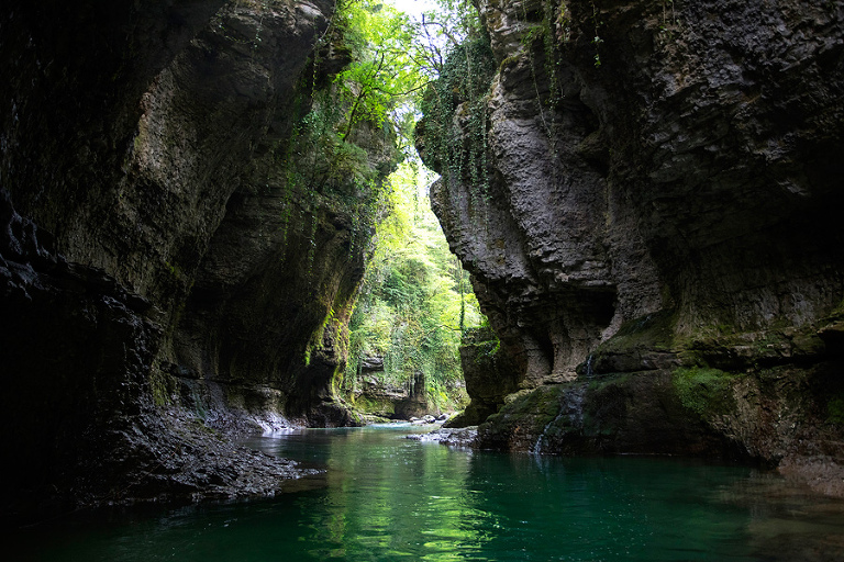 Mesto Kutaisi, drugo največje mesto Gruzije, se ne ponaša z nobeno posebno atrakcijo, ki bi privabljala trume ljudi. A v mesto se splača zaviti že zaradi same kulinarike. Kutaisi premore kar nekaj dobrih restavracij a glede na prebrano, videno in okušeno izstopa predvsem restavracija “Sisters”, ki je nekaj posebnega že zaradi dekorja, hrana pa je bila naravnost božanska. Pred ali po kosilu priporočam tudi ovinek do mestne tržnice in nakup kakšne lokalne specialitete, potem pa bo mesta dovolj. 🙂 Blizu mesta se nahajata dve lokaciji, ki pa sta vredni ogleda. O ruševinah termalne prestolnice sovjetske zveze sem pisal že TU, nekaj kilometrov severneje pa najdemo še kanjon Martvili, ki predstavlja lep pobeg iz samega mesta in je popularna točka med lokalnimi turisti. V tistih koncih ne morem mimo zgodbe treh turistov, ki so nekaj let nazaj kupili zapuščeno hišo in začeli z zanimivo zgodbo hostla Karma. Prenočišče Karma je res nekaj posebnega in če planirate pot v tiste konce, priporočam tudi kakšno noč pri njih. 😉