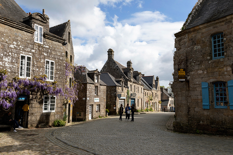Locronan, vasica z nekaj 100 prebivalci na zahodni strani Bretanje je tipičen primer, kako naj bi izgledala simpatično ohranjena vasica. Da takoj ob prihodu vidiš, da so stvari “poštimane”, urejene, brez kiča in kakšnih neumestnih novogradenj z npr. barvitimi fasadnimi vložki. 🙂 In ko se sprehajaš po njenih uličicah ti je takoj jasno, zakaj jo praktično vedno pripopajo na različne top liste najlepših vasic Francije. Zlata doba Locronana sega že v 15 stoletje, ko je bila vasica zaradi obilnih nasadov industrijske konoplje pomebna pri opremljanju vojaških in trgovskih ladij. In glede na potrebe predvidevam, da se je verjetno tu in tam našla tudi kakšna bilka neindustrijske različice. 🙂 😉