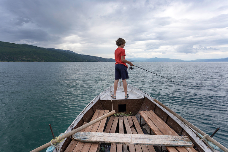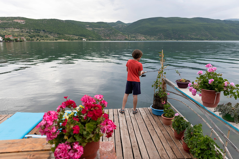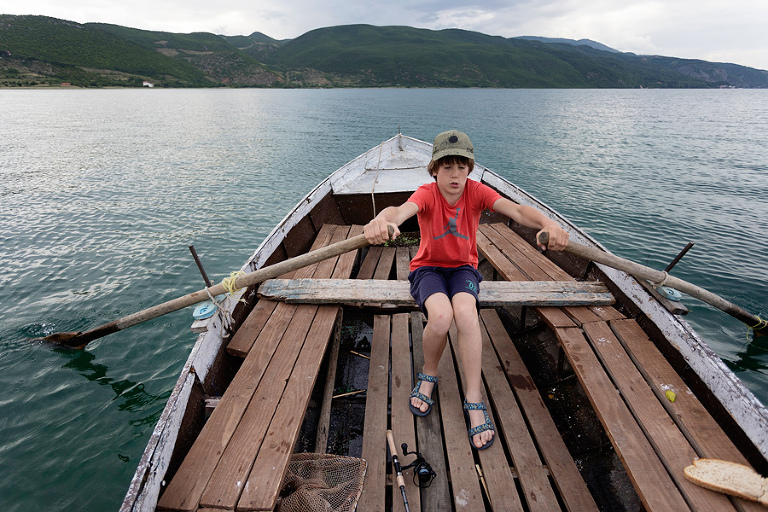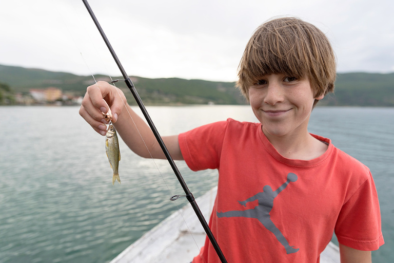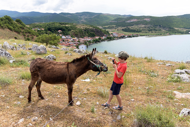 Po obisku mesta Skadar in okolice se je pravi road trip po Albaniji šele začel. Prva postojanka na poti proti Ohridskemu jezeru je bilo simpatično mestece Kruja, kjer smo imeli res lepe izkušnje z domačini. V Kruji, ki ponuja najboljši šoping na bazarju v celotni Albaniji, smo se neplanirano ustavili kar dvakrat. Prvič smo se ustavili v mestu, ko smo bili na poti proti jugu. Že takoj ob prihodu v kamp na obrobju mesta smo bili deležni nepozabne dobrodošlice lastnika kampa. Takoj ob pogledu na naše registrske tablice je izrazil navdušenje nad tem, da so ga končno spet obiskali tisti pravi balkanci. 🙂 Sledilo je vabilo na pivo oz. dve in v tisti dobri uri je bilo smeha res na pretek. Drugi obisk mesta je bil posledica gumidefekta v bližini in ravno s pomočjo prijaznih domačinov smo težavo rešili kot bi mignil. Po Kruji nas je pot mimo Tirane vodila proti jugovzhodu vse do ribiške vasici Lin na obali Ohridskega jezera. Ker v bližini vasice Lin ni bilo pametnega kampa, smo se odločili, da preživimo noč pri res super prijazni družini, ki si lasti prenočišča “Rosa home Inn”. V naslednjih dveh dneh pri njih smo bili deležni konstantnega razvajanja in priznam, da je po dolgi poti proti jugu kar prijalo biti nekaj ur malo na off. 🙂 Uživali smo ob vožnji z lokalnim čolničem, mali je užival v ribolovu in druženju z domačini, večer pa smo preživeli na grebenu nad mestecem, s fantastičnim pogledom na samo jezero. Če zavijete v Albanijo, vam toplo priporočam tudi ovinek v ta del dežele – Ohridsko jezero je pravi biser, še lepše pa nam je bilo na sosednjem Prespanskem jezeru, o katerem pa več v naslednjem postu. 😉