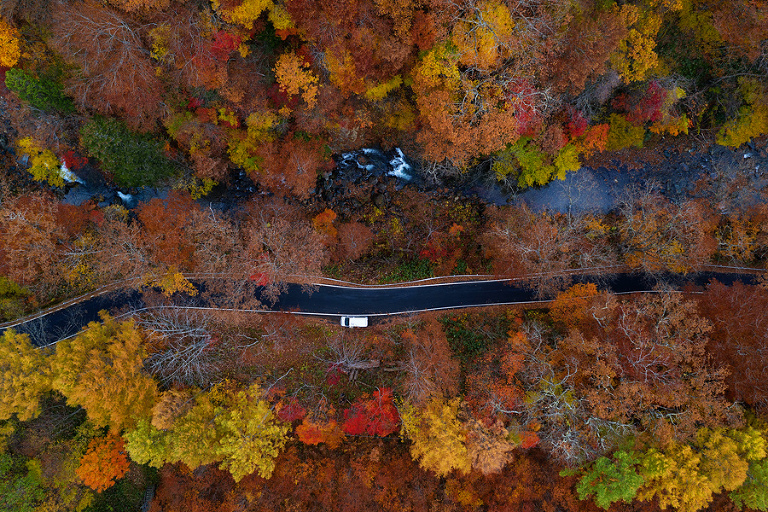 We spent the first night in Japan right next to Lake Chuzenya, that is almost 1300 meters high, just off the mighty Nantai volcano. And it was not a very pleasent night. The temperatures were winter like and when it became very windy early in the morning, the temperatures were well below zero. Both idyllic locations lie in Nikko National Park, which lies just next to the very famous and historically important Nikko town. And if the town is a real magnet for tourists all year round, the lake and its surroundings are popular especially in the autumn, when the Japanese get really crazy due to autumn colours. And it was the same on our cold autumn day. 🙂 First arrived crowds of photographers, then many many buses of schoolchildren and elders. And if we were alone on the lookout hill above the lake after breakfast, we already shared the Kegon waterfall with many many energetic scholars. 🙂