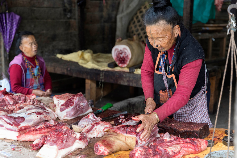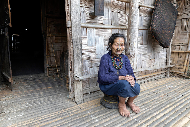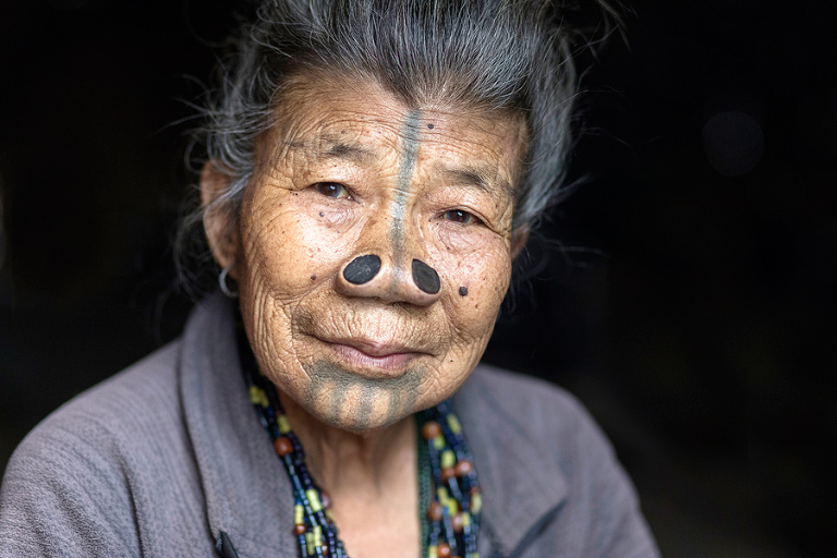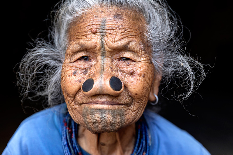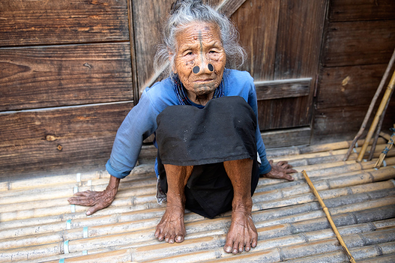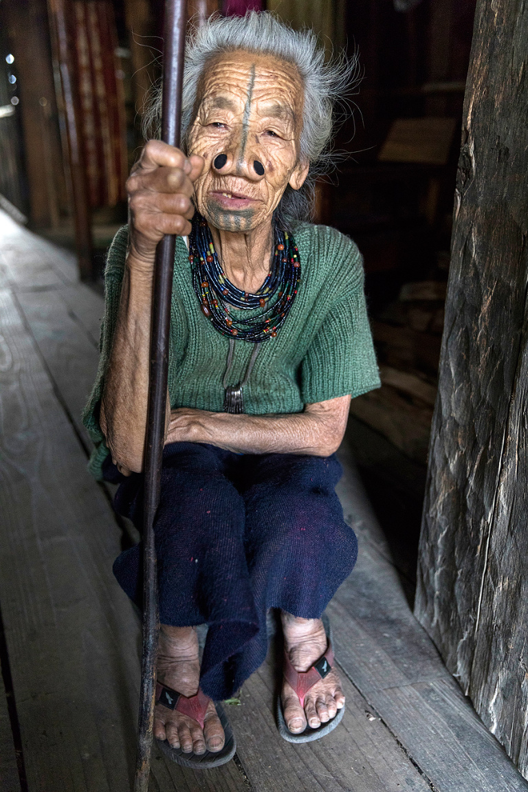 Eden izmed razlogov, zakaj smo odpotovali v predele severovzhodne Indije, so bile prav gotovo fotografije in zapisi o etnični skupini Apatani, ki sem jih bral in spremljal že leta. Ljudstvo Apatani, ki šteje tam okrog 60.000 ljudi, poseljuje hribe in doline v okolici mesta Ziro na južnih obronkih dežele Arunachal Pradesh. Če bi mogoče kdo za moški del plemena rekel “nič posebnega”, pa to zagotovo ne velja za ženski del populacije. Gospe, stare 60 let in več, se namreč lahko pohvalijo z res unikatnimi dekoracijami na obrazih, ki privabljajo antropologe in tudi fotografe s celega sveta. Če je bila pot do pred kratkim v njihovo deželo naporna in dolga, je po izgradnji res dobre ceste hitra in enostavna. Mesto Ziro, ki sem si ga bolj predstavljal kot kakšen manjši zaselek nekje na koncu sveta, me je presenetil s svojo modernostjo, predvsem pa velikostjo. In tisti prvi večer, ko smo se v temi vozili naokrog in iskali prenočišče, sem bil, priznam, zaradi utrujenosti in dolge poti precej razočaran. Že najbolj oddaljeni konci se spreminjajo z noro hitrostjo, vse postaja podobno in izgubljajo se kulture, ki me tako zelo privlačijo že leta. In nič drugače ni pri Apatanijih. Tisto noč smo prespali v “razkošnem” podeželskem hotelu, ki ga je izbral vodič. Hotel je bil sicer OK a daleč od našega okusa in pričakovanj. Raje bi se ulegel poleg kakšnega tradicionalnega ognjišča in zaspal ob zvokih domačih prašičev pod bambusovimi tlemi spalnice in se prebudil od jutranjega vrveža domačinov, kot pa da smo spali v razkošni 40m2 veliki sobi, ki je ponujala čisto vse, kar običajno ne potrebujemo na potovanjih. 🙂 Če odmislim veliko mesto Ziro, pa ponuja okolica nešteto majhnih dolin s tipičnimi prizori, ki so isti že stoletja. Nešteto riževih teras, vmes pa tradicionalne hiške narejene iz bambusa, ki se na žalost počasi spreminjajo v pločevinaste trdnjave. Ker je bil glavni namen našega obiska srečati in spoznati živjenje domačinov, smo večina dneva preživeli v tradicionalnih hiškah ob čvekanju z domačini. Ker je bil naš vodiš Tasang praktično domačin in pripadnik plemena Apatani, je bil celoten obisk res poseben, saj so bili skoraj v vsaki hiši njegovi daljni in bližnji sorodniki. 🙂 Gospe Kimi Yak, Kabo Jabjang, Tahe Japi, Tage Jaka, Tage Jamin in ostale so poskrbele, da je bilo druženje v njihovi družbi nepozabno. Njihove zgodbe iz otroštva so bile neverjetne in besede, s katerimi so opisovale izdelovanje tetovaž in nosnih vstavkov s strani njihovih staršev, s katerimi so njihovi starši želeli preprečiti, da bi bile hčere ugrabljene, so bile naravnost neverjetne. A kljub težkemu življenju in pretresljivim zgodbam so bile dame polne energije, nasmehov in veselja. Za piko na i smo imeli ob koncu dneva priložnost spoznati in se podružiti tudi z eminentnim članom plemena Apatani – lokalnim šamanom po imenu Mudam Pay. Gospod, ki naj bi razpolagal s posebno močjo in znanjem je bil najboljša možna izbira za konec še enega fantastičnega, nepozabnega popotniškega dne. Za take momente se enostavno živi. 😉