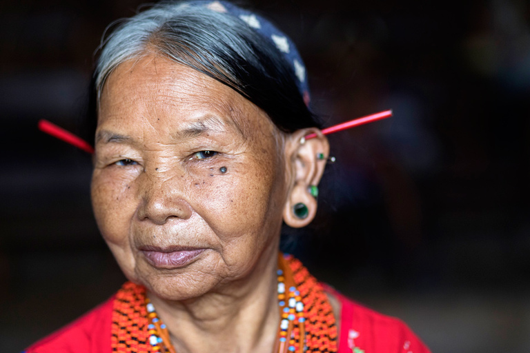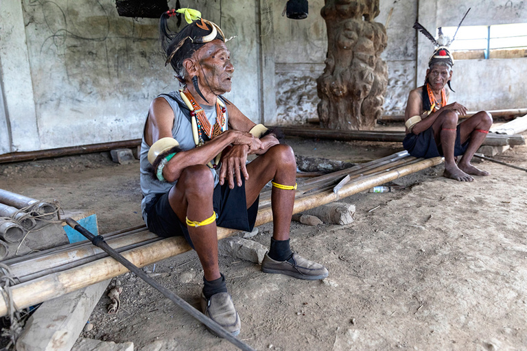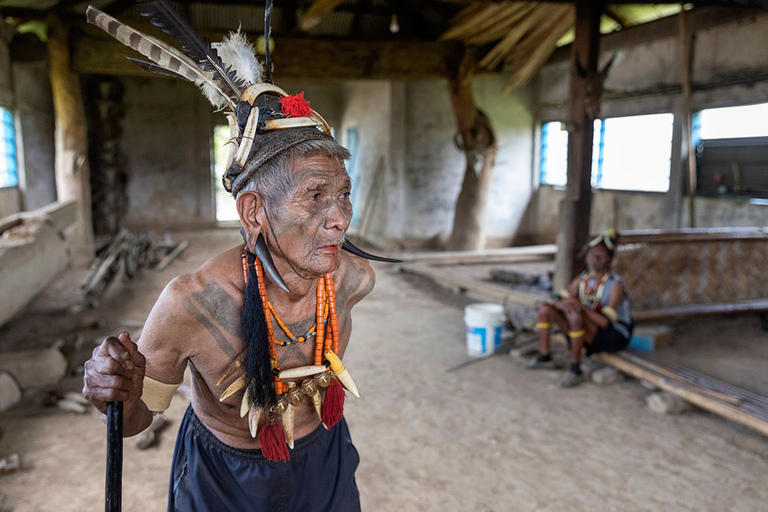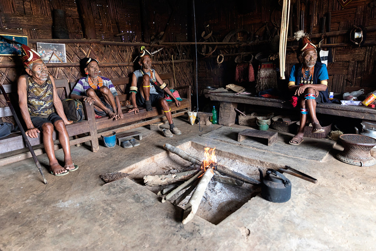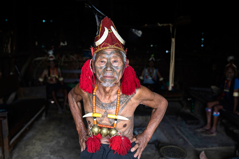 Obisk plemena Konyak, ki poseljuje mejno območje Nagaland med Indijo in sosednjim Myanmarom, je bil eden izmed razlogov, zakaj smo spet zavili v Indijo. Pred skoraj 20 leti sem skušal obiskati pripadnike plemena Konyak med najinim potovanjem po Myanmarju. A ker so bili praktično vsi predeli ob meji z Indijo zaprti za turiste, sem lahko njihovo kulturo občudoval le preko spektakularnih fotografij najrazličnejših fotografov. Do letos. 🙂 Ko smo se iz mesta Pasighat počasi premikali proti meji z deželo Nagaland, so se pred nami odvijale konkretne spremembe. Iz dežele, kjer je glavni hinduizem, smo ob nekem prečkanju reke najprej zavili na območje, kjer kraljuje budizem, templji in vse naokrog pa me je spominjalo na Tajsko v nekih drugih časi – zakaj v drugih – ker smo bili edini turisti daleč naokrog. Po prečkanju še ene reke in zadnji vojaški in policijski kontroli, kjer so pregledali čisto vsa dovoljenja, ki smo jih morali urediti pred prihodom, pa smo po razdrapani cesti zavili v hribe in v deželo etnične skupine Konyak. Mestece Mon, administrativno središče tega dela pokrajine, je bilo naša baza za dvodnevno odkrivanje okolice. Po ckeck in-u na policijski postaji in še enem v simpatičnem hotelčku neznanega imena s super prijaznima dekletoma, ki sta bili lastnici prenočišč, smo se naslednje jutro podali na pot. Kljub temu, da je bila naša želja, da naslednji dan obiščemo nekaj vasic, pa smo po priporočilu vodiča Tasanga in lokalca, ki je dober poznavalec okoliških vasic, najprej zavili v vasico po njunem izboru in zaradi našega navdušenja tam ostali praktično cel dan. Malo je še tako unikatnih krajev, ki ti ponudijo tako pristen in originalen vpogled v življenje, kulturo, običaje etnične skupine, plemena. In ta vasica, na koncu neverjetno razdrapane ceste, nam je dala prav to. Šef, poglavar vasice nas je sam, skupaj s svojo kraljico” počakal v njegovi hiši in po kratkem pogovoru zaželel dobrodošlico. Potem pa so počasi začeli v njegovo haciendo kapljati še njegovi prijatelji. Prijatelji iz otroštva, prijatelji iz nekih drugič časov, ki jih te dni težko razumeš. Moški pripadniki plemena Konyak so veljali za najbolj bojevite daleč naokrog. Plemenski boji nekaj deset let nazaj so bila stalnica v teh krajih in večina bojev se je zaključila z mrtvimi na obeh straneh. Najboljša trofeja so bile glave sovražnikov, ki si jih iz boja prinesel domov, jih očistil, potem pa lepo postavil za okras na polico v domači hiši. Lovci na glave, kot tudi pravijo pripadnikom plemena Konyak, so se umirili s prihodom misijonarjev, ki so drastično spremenili te kraje – kot tudi drugje. Tisti prvi misijonarji so imeli še precej kratek rok trajanja in marsikdo je verjetno ostal na kakšni polici lokalne hiše, sčasoma pa so se stvari spremenile. V zadnjih letih se ti oddaljeni svetovi spreminjajo z neverjetno hitrostjo in vse te fascinatne kulture počasi izginajo z obličja planeta. Srečo smo imeli, saj smo med zadnjimi, katerim je bilo dano videti svetove, ki jih čez nekaj let več ne bo. 🙁