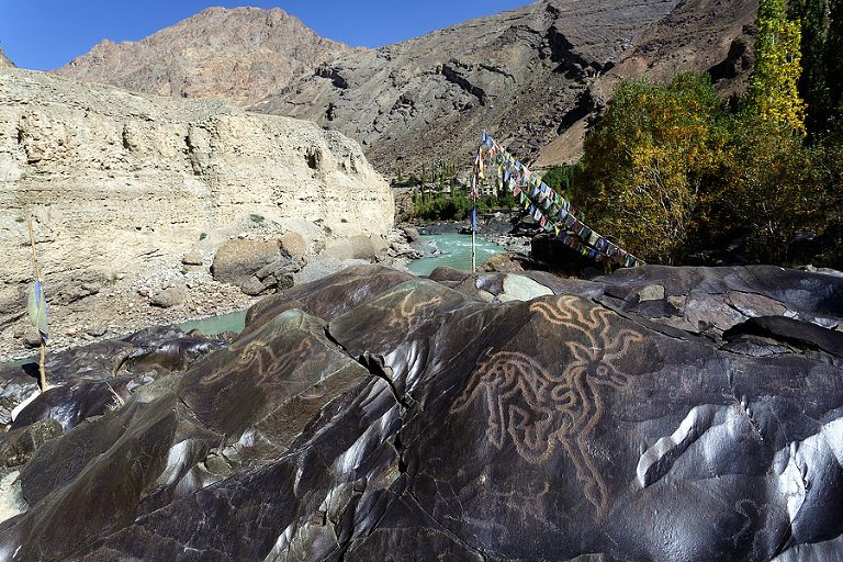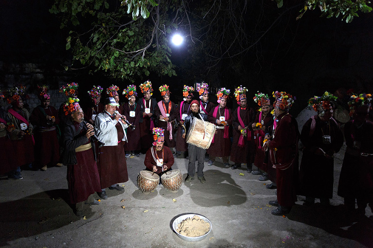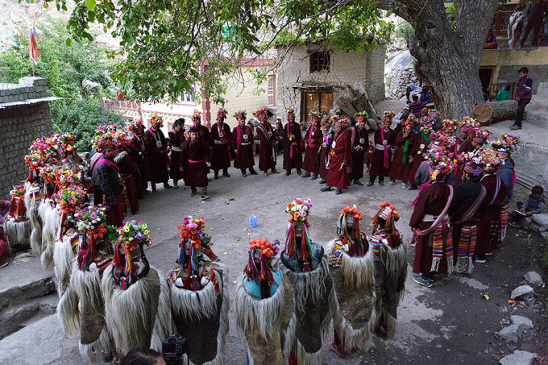 Naše potovanje po Ladakhu se je začelo v majhni vasici Alchi, ki leži dobri dve uri vožnje od prestolnice Leh. Simpatična vasica na nadmorski višini 3100 metrov je znana predvsem po najstarejšem samostanu v Ladakhu, ki ga lahko najdeš na koncu vasi. A za nas je bila v osnovi le super točka, kjer smo se lahko odpočili od naporne poti, navadili na himalajske višine in naredili plane za naprej. Prva prava destinacija na naši poti pa je bil majhnen zaselek Dha Hanu ob reki Ind, na območju, ki je le streljaj od precej delikatne mejne razmejitve med Indijo in Pakistanom. Glede na ugotovitve nekaterih zgodovinarjev naj bi bili pripadniki ljudstva Drokpa, ki poseljujo le nekaj zaselkov na tem spornem območju, potomci vojakov Aleksandra Velikega, ki so se po porazih s tamkajšnjimi veljaki izgubili v teh precej neobljudenih koncih. No, po ugotovitvah drugih so potomci ljudstva Darth, ki so se v te kraje preselili iz Baltistana v sosednjem Pakistanu. A ne glede na to, kdo ima prav, so kraji prav zaradi njih nekaj posebnega. Sama pot ob reki Ind je prava paša za oči in tistih dobrih 5 ur vožnje je minilo še preveč hitro. A če je bila vasica ob našem prihodu skoraj prazna, se je v pozno popoldanskih urah vse spremenilo. Ne da bi vedeli smo v tiste konce prišli ravno ob festivalu, ki je namenjen praznovanju druge žetve – ja, na dobrih 3000 metrih so bila v oktobru polja še vedno polna paradižnikov, kumar in najrazličnejših bučk. Ljudje so se zaradi tega preoblačili v tradicionalna oblačila in se pripravljali na večerno fešto. 🙂 Vse skupaj je bilo res čarobno, sploh večerni plesi in petje v sosednji vasici nedaleč stran. Ja, včasih je potrebno imeti za doživeti kaj posebnega tudi kanček sreče. 🙂 In še moje skromno mnenje – ljudstvo Drokpa so zagotovo potomci Aleksandra Velikega. Ker dvomim, da lahko še kdo tako obvlada pridelavo paradižnikov in ostale zelenjave kot naši skoraj sosednji Makedonci. 🙂