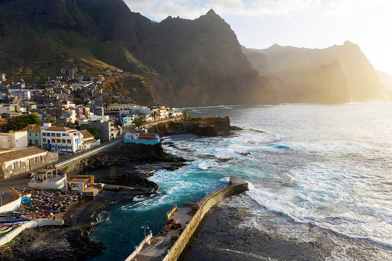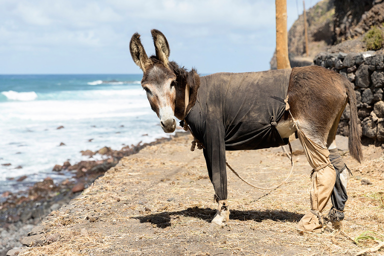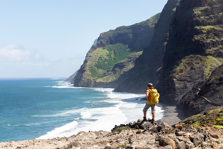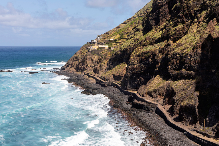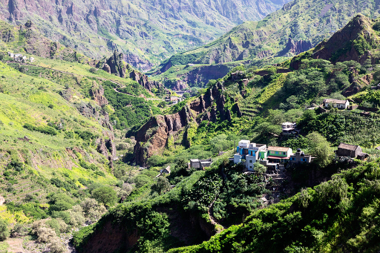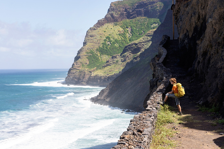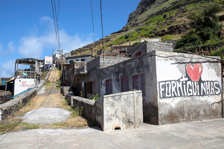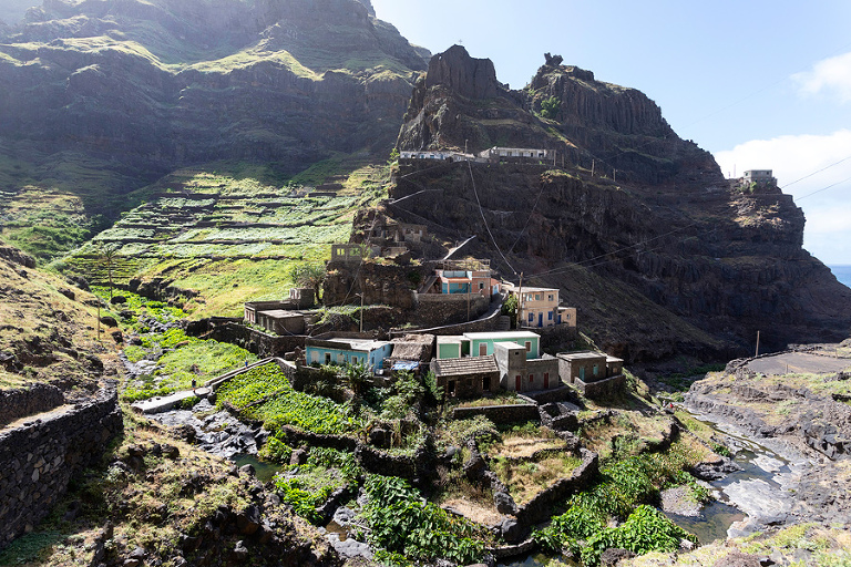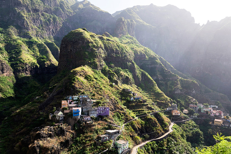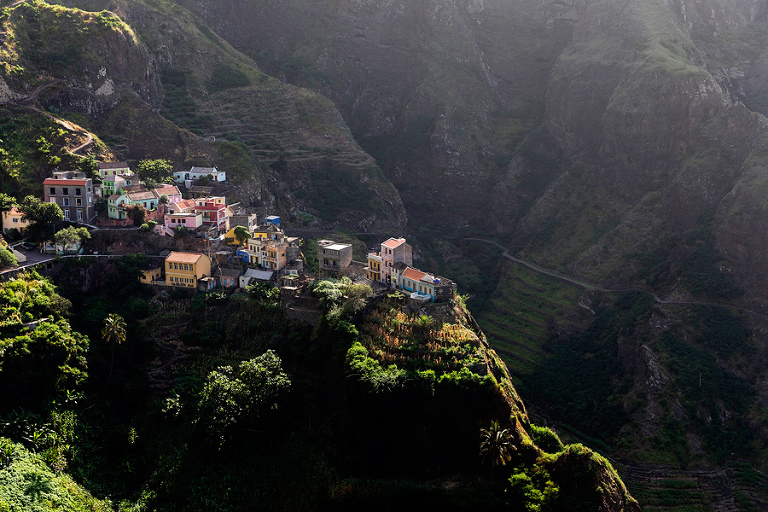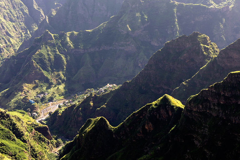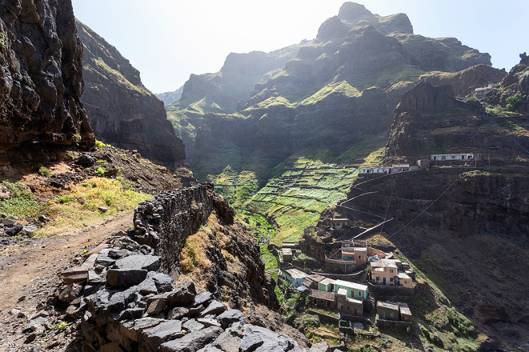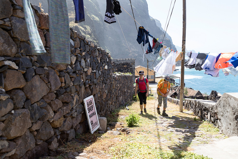 Otok Santo Antao je bil praktično edini razlog, zakaj smo odpotovali na Zelenortske otoke. Najzahodnejši od vseh otokov ter drugi največji po velikosti ponuja poleg neverjetne pokrajine in zanimivih manjših zaselkov, ene izmed najbolj spektakularnih pohodniških poti na tem delu sveta. Če se je do pred nekaj leti do otoka še dalo leteti, pa so po letalski nesreči edino letališče na severu otoka zaprli in edini način, kako na otok priti danes je s trajektno linijo s sosednjega otoka Sao Vicente, o katerem sem kar nekaj napisal TU. Otok Santo Antao, ki velja za raj za pohodnike, ponuja nešteto pohodniških poti in v 12 dneh, preživetih na otoku, smo naredili 4 večje, celodnevne pohodniške ture. Poti so v bistvu stare povezovalne poti med posameznimi vasicami, ki so v uporabi še danes in kljub temu, da gre za odročne kraje, so poti lepo urejene, vzdrževane in dobro označene. Večina tur poteka od toče A do točke B, kar zahteva nekaj logistike a vse skupaj je še kako vredno tura. Prva in verjetno kar najbolj obiskana pohodniška tura poteka od vasice Cruzinha do končnega cilja v mestecu Ponta do Sol ali obratno. Po prihodu s trajektom na otok, nas je kar na pomolu pobral gospod Adriano, ki ga toplo priporočam za logistične zadeve, in nas v dobri uri in pol preko nepozabne pokrajine zapeljal do konca ceste v vasici Cruzinha, ki velja za izhodišče tega pohoda. Cca. 15 kilometrov dolga pot, za katero boste potrebovali cca. 6h, bi bila težko bolj zanimiva, spektakularnejša, z lepšimi razgledi … Kljub temu, da je pot dokaj enostavna, pa je vročina tista, ki zna popestriti tistih nekaj vzponov. Na poti najdete nekaj zapuščenih hišk in dve še kako živi vasici Corvo in Fontainhas, kjer lahko kupite tudi kakšno hrano in pijačo. Drugače pa je cilj mestece Ponta do Sol kraj, kjer vas čaka celotno udobje modernega sveta. 🙂