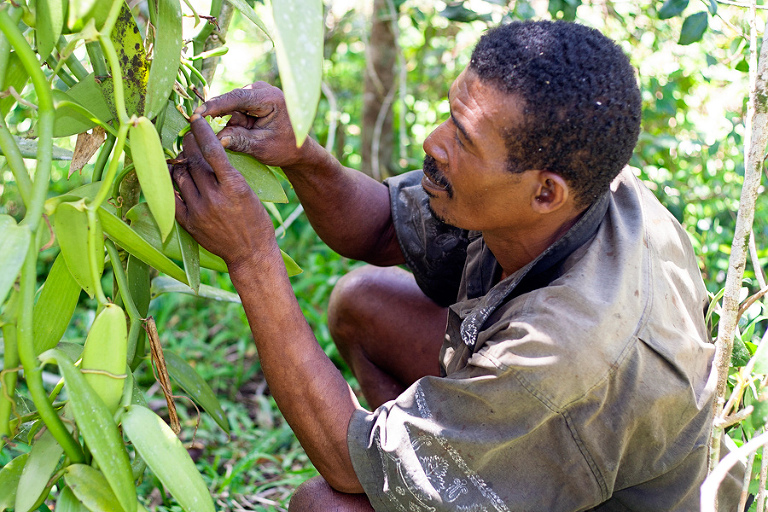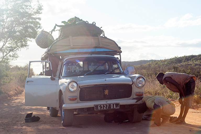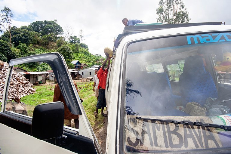 Najbolj nore popotniške zgodbe običajno nastanejo na sami poti in z Madagaskarja imava teh zgodb kar nekaj. 🙂 Po slovesu od simpatične ribiške vasice in idiličnega smaragdnega morja na severu, je bil čas za pravo malgaško avanturo. In začetek te ni bil napačen. Najprej naju je pot vodila do nacionalnega rezervata Ankarana, ki je znan po svojem živalskem svetu in zanimivih kraških pojavih. Običajno ga obiščejo za nekaj ur a najina želja je bila, da obiščeva kraje, kamo gredo obiskovalci zelo redko. In tu so se stvari zapletle. Najprej iskanje vodiča, potem nosača, sledilo je kupovanje posode, hrane… In ko sva mislila, da so stvari urejene, so postale hitro spet neurejene. 🙂 Težave nama je delal predvsem vodič, ki je na koncu enostavno obupal – strah pred demoni, ki živijo globoko v gozdu je bil prevelik in spanje v gozdu je bilo zanj prenevarno početje. Hvala bogu je bil vsaj nosač za akcijo in naslednji trije dnevi so bili prava avantura. Po Ankarani pa potem naprej. Najprej z javnim prevozom, ki je na Madagaskarju zgodba zase, počasi do mesteca Ambilobe, kjer sva imela željo tudi prespati. A ker so bile vse namestitve zasedene z francoskimi vojaki, nama ni preostalo drugega, kot da odtavava do tržnice in najdeva prevoz naprej. In po urah iskanja sva našla najboljše, kar je bilo možno najti v mestu. Pickup znamke Peugeot je oddelal svoje že desetletja nazaj v Franciji. Kot večina drugih avtov, ki vozijo po Madagaskarju, se je tudi ta simpatična mrcina muzejske vrednosti le stežka bojevala z malgaškimi cestami. Naslednjih 14 ur, kot je trajala cca. 150km dolga pot do vanilijeve obale na vzhodni obali Madagaskarja, je bil čisti pekel. Okvare in gumidefekti so se vrstili drug za drugim. A to je bilo še kar sprejemljivo. Sredi noči je izginila počasi tudi cesta, vozili smo se po kolovozih, stezicah, poljih, gozdovih… Bilo je neverjetno. Za piko na i smo v zgodnjih jutranjih nočnih urah le dobro uro pred ciljem med prečenjem reke še obstali v blatu in čisto izmučeni smo po porivanju le nekako prilezli do mesteca Vohemar. Še v temi sva prilezla do najinega bungalova in izmučena padla v posteljo. A avanture še ni bilo konec. Čez kakšne pol urce naju je zbudilo čudno premikanje najinega majhnega, na kolih dvignjenega bungalova. Najprej sva pomislila na potres a ko sem pogledal skozi okno, sem opazil le simpatično kravo, ki se je drgnila ob kol najine hiške. 🙂 Pred skokom v posteljo je sledil še obisk WC-ja in množičen “napad” nočnih žabic. Od utrujenosti niti nisem vedel, ali sanjam ali vidim pravilno – žabe so bile namreč povsod. Na tleh, na stenah, v WC-ju. 🙂 A nadaljna pot po vanilijevi obali Madagaskarja je bila umirjena. Na SV otoka Madagaskar namreč raste zeleno zlato – vanilija. Dragocena rastlina, zaradi katere pogosto pride do skoraj neverjetnih spopadov med posameznimi kmetovalci, je glavno gonilo tega dela otoka. Coca cola, proizvajalec pijač, je v tistih letih večina svoje vanilije kupoval ravno v teh koncih. Cena je namreč zaradi umetnega oplojevanja cveta cenejša od tistih, pri katerih pride do oploditve po naravni poti. Ne vem, ali je kakšna razlika potem tudi v okusu, možno pa je, da gre le za dober nateg kupovalcev. 🙂 S kmeti sva obiskala kar nekaj plantaž vanilije, kave, kakavovcev. Občutek sva imela, da v teh krajih raste praktično vse, kar vtakneš v zemljo. A niso bile samo plantaže tisto, kar je bilo zanimivo. Pokrajina je bila res divja in prava paša za oči. Fantastične plaže so si sledile iz kilometra v kilometer a kopanje na njih žal ni bilo možno. Morski tokovi in morski psi so po pripovedovanju domačinov enostavno prevelik zalogaj.