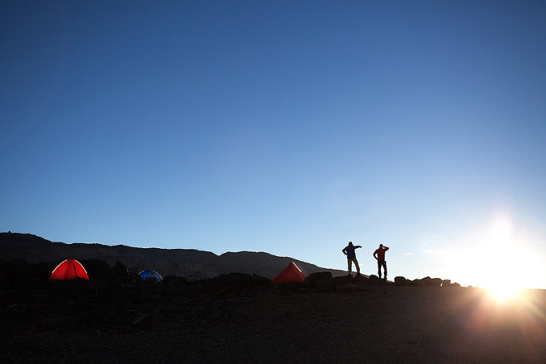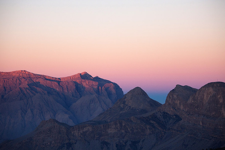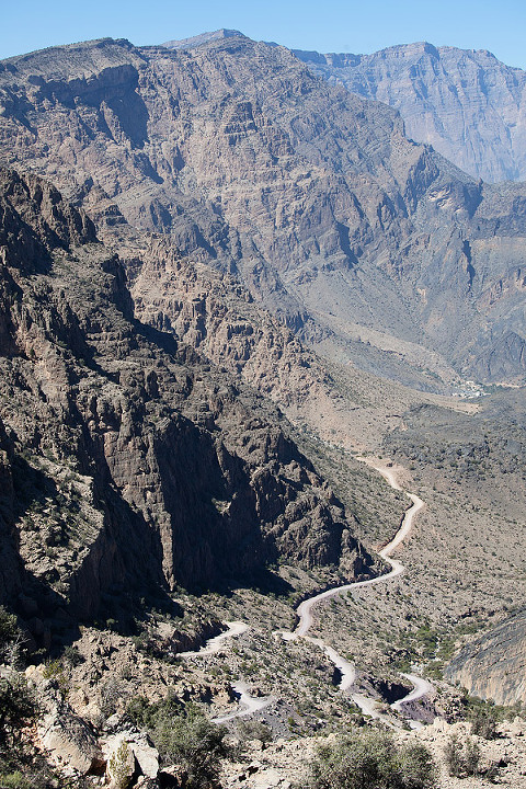 Prvi post pa o gorovju Al Hajar oziroma naši poti po kamnitih gorah Omana. Ker je bil naš plan res natrpan in smo skušali videti čim več, smo se v gorah potikali le 3 dni. Iz Nizwe smo se najprej podali proti Wadi Ghulu in kasneje najvišji gori Omana Jebel Shamu (po naše gori sonca).Vrh gore (3075 metrov) smo iz našega kampa na 2000 metrov gledali le od daleč a verjemite, razgledi iz šotora so bili fenomenalni. Razlog je bil Wadi Nakhur, pravijo mu tudi Grand Canyon Omana, ki se je razpostiral le nekaj metrov pred našimi šotori. Kasneje nas je pot vodila čez gorske prelaze do verjetno najlepše gorske vasice Omana – Bilad Sayt. Vmes smo obiskali še Snake canyon, ki ni dobil ime zaradi kač temveč njegove zavite oblike ter little Snake Canyon. Oba sta prava magneta za ljubitelje malo bolj zahtevnega canyoninga.