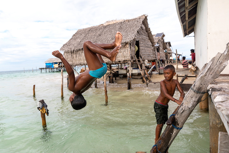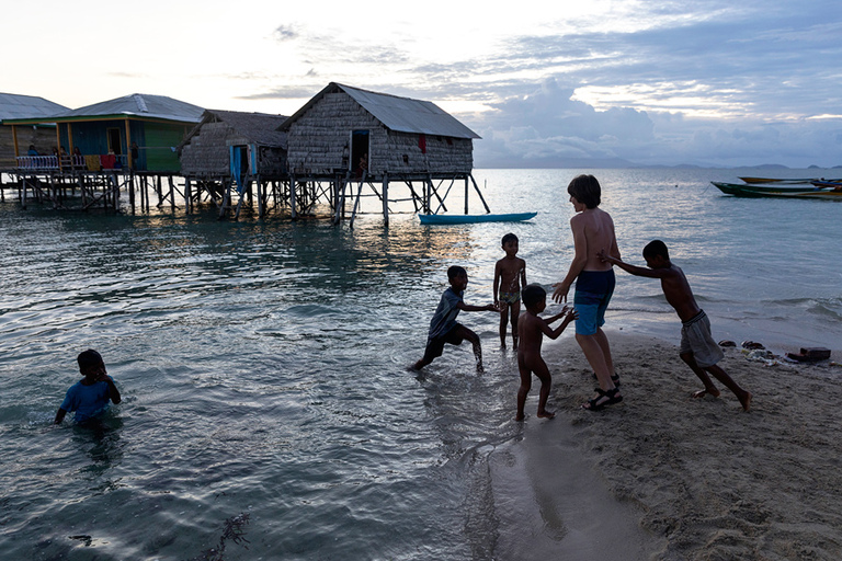 Po otočju Sombori in Labengki je bil čas za novo morsko epizodo. Tik pred našim odhodom na potovanje sem na netu skoraj pomotoma naletel na fotografijo fantastičnih vasic ljudstva Bajau. Najprej sem pomislil, da celotna fotografija “fake”, a ob konkretnem raziskovanje na netu sem na koncu našel človeka, ki je kraj poznal in nas na koncu tja tudi zapeljal. Celotna popotna uvertura se je začela že v mestu Kendari in z vožnjo z lokalnim trajektom do glavnega mesta otoka Muna – Raho. Po srečanju z lokalcem smo s potjo nadaljevali čez celotni otok do lokalne policijske postaje, kjer je sledilo obvezno preverjanje naših papirjev, na koncu pa nas je čakal še lokalni ribič, ki nas je z barko zapeljal do našega doma naslednjih nekaj dni – vasice, ki leži dobesedno na sredini morja. V vas smo prišli ob koncu dneva in neverjetni so bili tisti prvi prizori, ko ugotoviš, kje ljudje dejansko živijo. Mogoče deset na roke zbitih lesenih hišk je ležalo na edini peščeni zaplati daleč naokrog. Zaplata, ki pogleda ven le ob oseki, pride še kako prav za vaško druženje, klepet ali pa otroško partijo nogometa. No, ob res nizki oseki je zadnji del peščenega otoka tudi priročen WC. 🙂 Ko peska ni, pa se praktično vse dogajanje prestavi na čolne in rustikalne in na pol podrte lesene terase hiš. V naslednjih treh dneh smo imeli tako priložnost pobliže spoznati dnevno rutino pripadnikov ljudstva Bajau oz. morskih ciganov, kot jim tudi pravijo in po videnem moram reči, da jim ni dolgčas. Če je morje otrokom glavni vir zabave, je odraslim glavni vir preživetja in zaslužka. Če so ženske večinoma zadolžene , da skrbijo za dom in otroke, so praktično vsi moški ribiči. Pitna voda je luksuz, večinoma jo pripeljejo iz glavnega otoka ali jo zberejo v času dežja, zato je tuširanje že čisti razvrat. Če izgleda na fotografijah vse skupaj precej rajsko, je realnost daleč od tega. V naslednjih dneh smo obiskali še nekaj lokalnih vasi a o tem več v naslednji objavi.