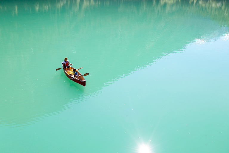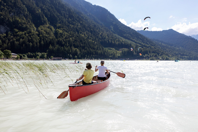 Dobrih 14 dni nazaj smo si kupili novo igračo. 🙂 Že kar nekaj časa sem namreč spremljal in iskal pravi model in ko je bil pred dvema tednoma pri naših severnih sosedih objavljen oglas za rabljen kanu znamke “Old Town” po res fajn ceni, je bil čas za akcijo. O tem, če res “potrebujemo” še en čoln, se je do nakupa spraševala seveda tudi žena. 🙂 A po noro dobrih testnih turah pri sosedih in nepozabni turi pred dnevi na naši Soči, je skepticizem izvodenel. 🙂 Preprosto se nam je odprl še en svet, do katerega z našimi sea kayaki enostavno nismo mogli. Testna vožnja kanuja v bližini Zillertala bi bila težko bolj zanimiva. Umetno jezero “Speicher Stillup” s fantastično gorsko kuliso je bil super predlog prodajalca – po tistem dopoldnevu na vodi bi se težko odlločili za nenakup kanuja. Ker smo imeli pa na razpolago še dober dan, smo izkoristili super poletno vreme še za skok na bližnje jezero Achensee, na poti domov pa se je bilo treba nujno ustaviti še na mogočnih slapovih Krimml in idiličnem jezeru Hintersee. Tisti konci so res neverjetni – edina negativna stvar je, da je potrebno plačati skoraj za vsak del ceste, ki ga prevoziš.