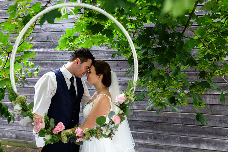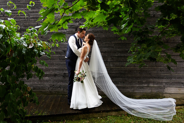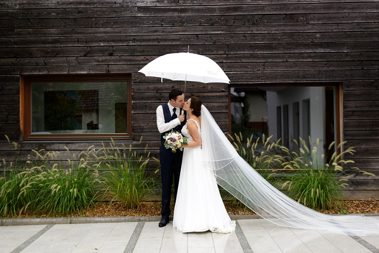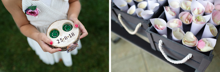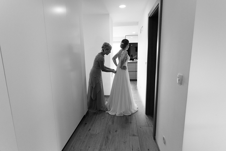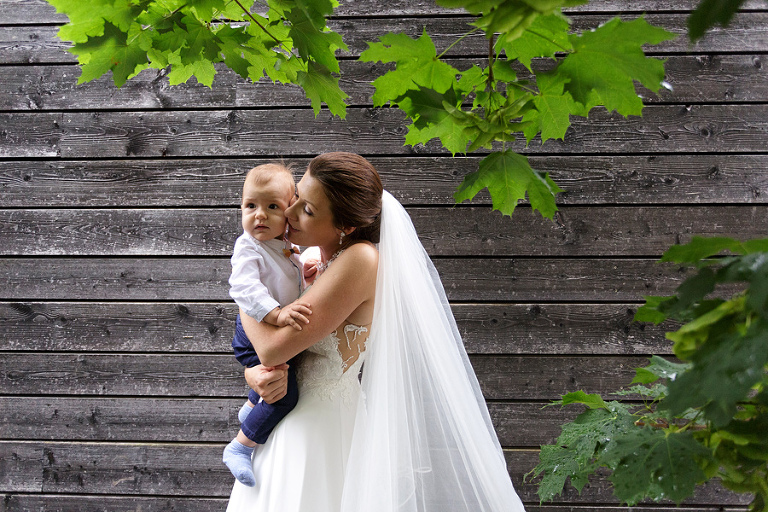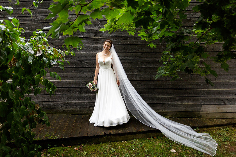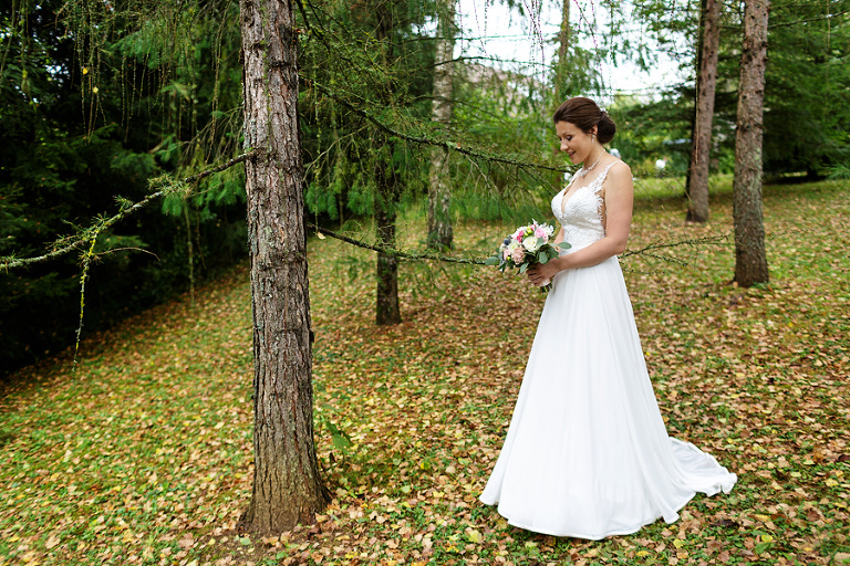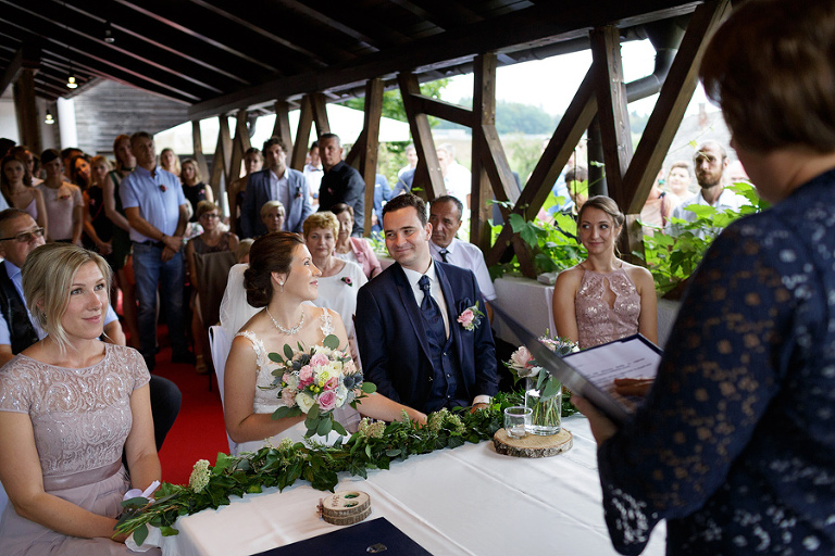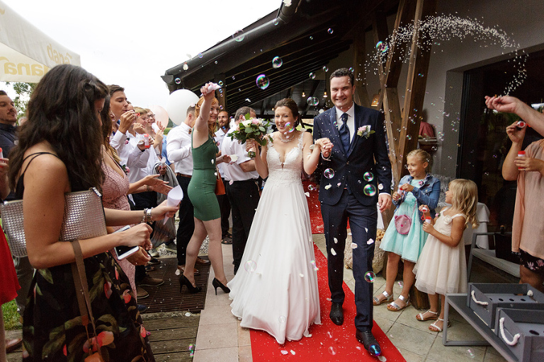 Every year, we travel couple of times because of wedding photography to Novo mesto and its surroundings. And a week ago, on a wedding day of A&D, it was the last time this year. After wedding preparations in Novo mesto, the entire wedding day took place at the Gostilna Rakar near Trebnje. And despite the fact that the weather forecast was horrible, we were lucky again. OK, it would be better if it would not started to rain just before the photo session, but that might be just too much. 🙂 So because of rain we did a short session simply in front of the Rakar house – in the shade of green trees. 😉