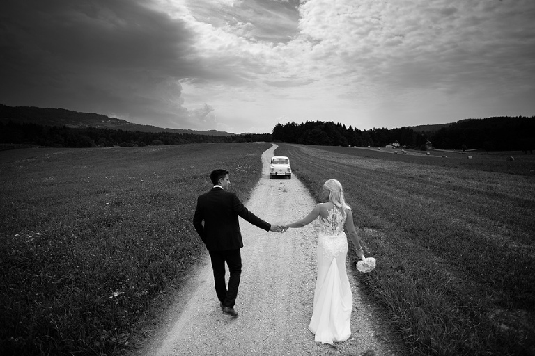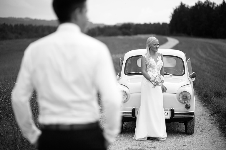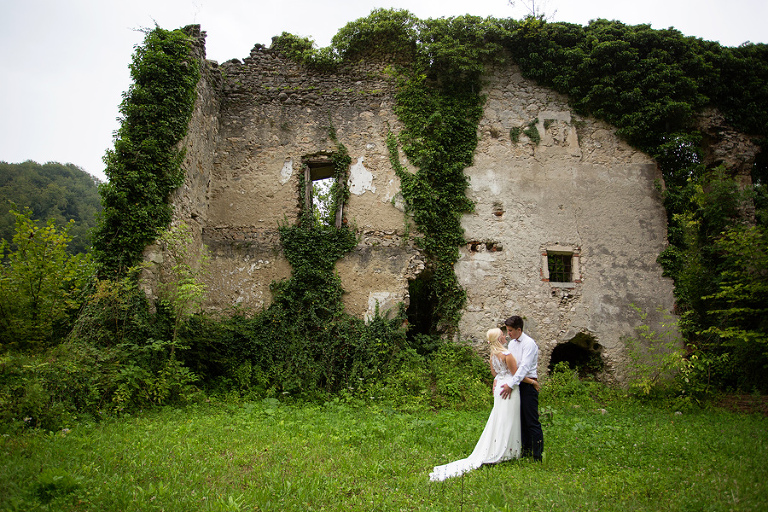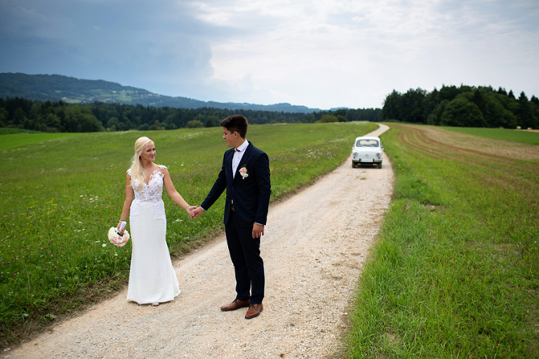 Even though we have again very turbulent weather in this summer months in Slovenia, we were still very lucky with it on our wedding days. OK, we had a rain shower 3 weeks ago during photo session, but the rest was picture perfect. 🙂 But 10 days ago it was a bit different story. 🙂 The first part of P & L’s wedding day took place in Moravče, where preparations, church ceremony and the photo session took place. The weather was nice and everything was perfect. But after, that things got a little bit more interesting. 🙂 It started with rain and thunderstorms on Medijski castle, then we had a car accident just minutes before civil ceremony and it ended with perfect summer rainy outdoor civil ceremony on the lawn of the Lisjak House. 🙂 And despite all these things, the P & A wedding day was really nice and full of positive energy. And it was really nice just to watch P&L, who didn’t bother with rain at all. It was truly their perfect day. Below I am publishing just couple of photos, but there will be many more in upcoming photo book – when I finally check couple of more 1000 photos.
