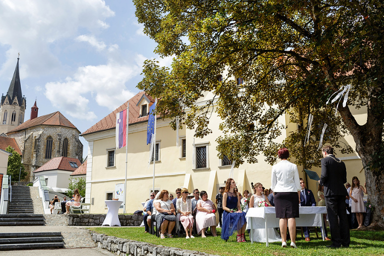The wedding season is in full swing and I really enjoy listening to all these ideas from my wedding couples how to make their wedding day perfect. When I first met Petra and Blaž I knew, that their wedding day is going to be something special. 🙂 Beautiful locations, interesting ideas, and above all their 100% personal engagement, made their wedding day truly special. The civil ceremony took place in the park of the City Museum in Novo mesto, the church ceremony in Kapitelj church nearby and the party in Gostilna Loka. P & B, enjoy your life together in style that we witnessed on your wedding day. 🙂 And yes, I have to say that working as a photographer was on your day pure joy. 😉