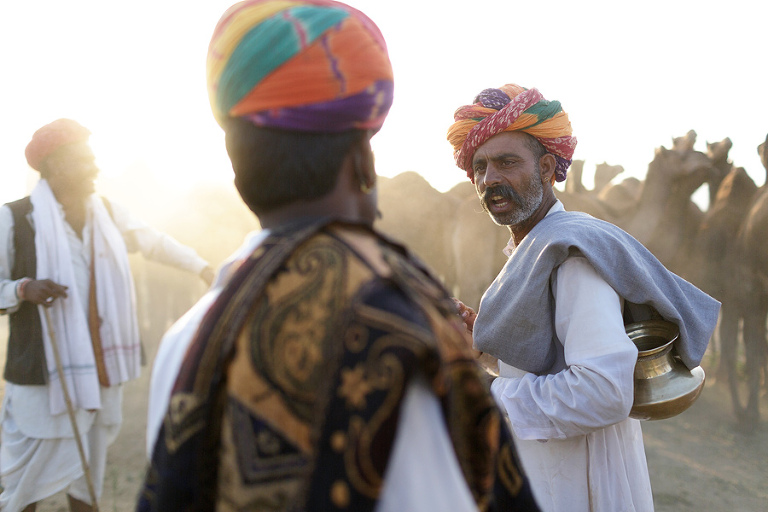 Pushkar or “Blue Lotus Flower” in Sanskrit, a pilgrimage site for both Hindus and Sikh, got on our itinerary list practically a minute before the start of our India trip. And despite the fact that it is a lovely little town lying around the Pushkar lake, with many temples and gaths, this was not the reason for our visit. Every year at the end of October or at the beginning of November there is a camel market in the city. The biggest camel market in the world, that totally changes the otherwise sleepy town of Pushkar. Everything starts a few days before the official opening of the market week. First days are mainly focused on camel trade, arriving of the camels and selling them, extremely photogenic locals involved in camel bargaining… 🙂 After the offcial opening of the market things change – camel herders go home and then it’s time to party and watch all kinds of artisans and performers. Some practical info about our trip here and here.