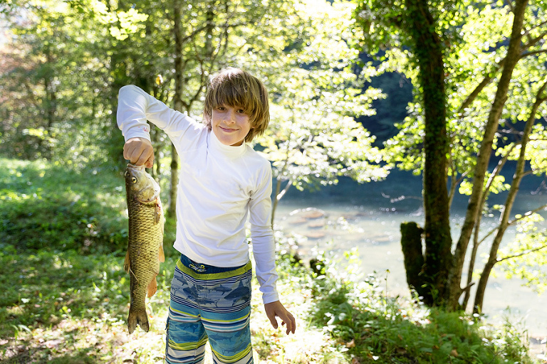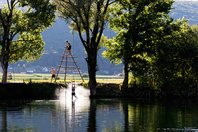We had been planning a rafting trip on the Kolpa river for some time and a few days ago we finally managed to do it. In fact, it all started on the river Krka, where, on the recommendation of new neighbours, we stopped on a local swimming spot for a short break on the way to Kolpa. Because it turned out that the location is super great, we stayed there till late evening and because of that we spent that night in Črmošnjice, on campervan stop. 🙂 The next morning it was action again, this time rafting. I know the upper, Kostel part of the Kolpa River quite well, as my genes come from there, and I also spent quite a few days there in my youth. Since it was a mans day, we also combined rafting with fishing and, considering the catch, we were quite successful. 🙂 The path from Kobilna jama, where we started the tour, to KolpaRaft Skender, where we camped after that, was easy, but in some calm parts of the river it was too boring already. But fortunately the water was quite warm and we somehow endured that as well. 😉