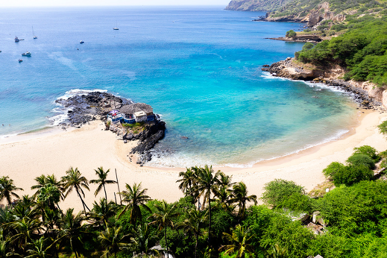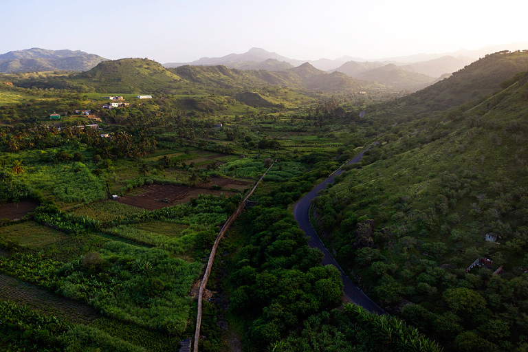 Na otoku Santiago, največjem od vseh otokov arhipelaga Zelenortskih otokov, si lahko brez težav več dni. A ker smo imeli v našem primeru na razpolago le polna dva dneva, en dan pa je bil namenjen glavnemu mestu in vasici Cidade Velha, smo si ostali del otoka pogledali bolj na hitro. 🙂 Najboljši način za potep po otoku je najeti avto ali pa najeti lokalnega voznika z avtom – in to smo naredili tudi mi. Otok Santiago je velik in ponuja vsega po malem. V notranjosti otoka kraljujejo mogočne vzpetine, največja med njimi Pico de Antónia pa je visoka skoraj 1400 metrov nad morjem. Najlepši predeli otoka, no, vsaj po našem mnenju, se skrivajo na severu Santiaga, v okolici mesta Tarrafal. Če je bilo pred leti mesto znano predvsem po temni plati zgodovine in bližnjem taborišču za politične in druge zapornike, pa je v teh dneh bolj poznan po lepih plažah, umirjenem lokalnem vzdušju in odlični kulinariki. Ribje kosilo v simpatični baraki na plaži je bilo vrhunsko. 😉 Na koncu nas je voznik popeljal še v lokalno krčmo, kjer je bilo treba nujno sprobati še eno lokalno specialiteto – rum. Žganje ni bilo nič posebnega, kot da bi bil precej močan špirit. A slab okus je odtehtala predvsem dobra družba v tisti baraki ob cesti, ki je bila zbita iz nekaj kosov pločevine. Fotozapisa od tam pač ni. 🙂