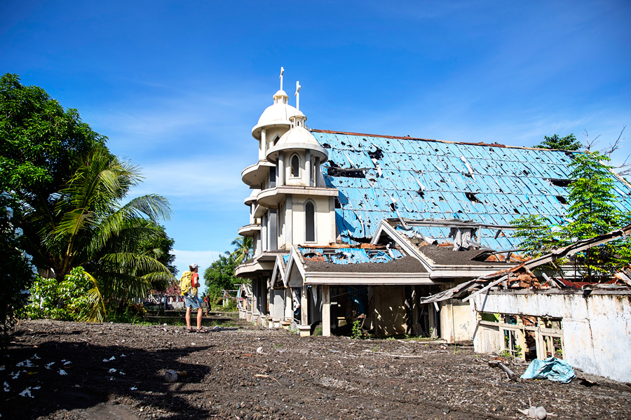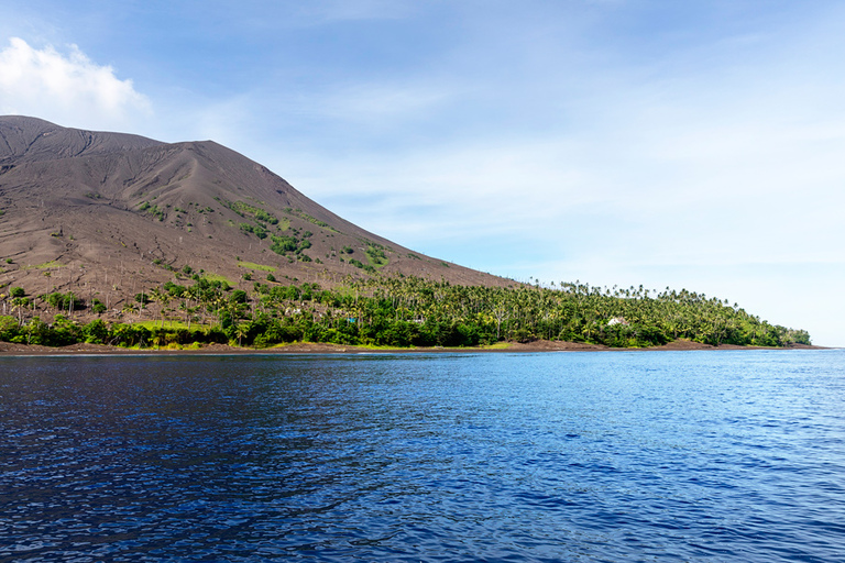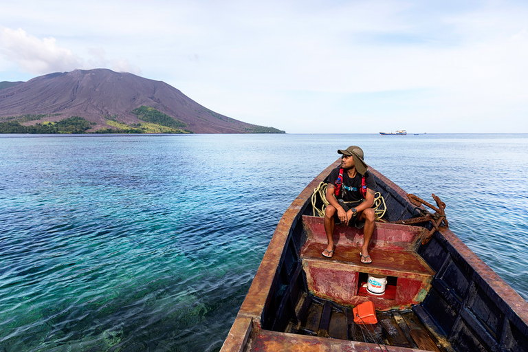 Ruang je bil najina prva postaja. Zgodaj zjutraj smo z majhnim ribiškim čolnom zapustili Tagulandang in se odpravili proti otoku, ki med domačini vzbuja pravo strahospoštovanje. Vožnja je minila v skoraj popolni tišini — tisti čudni, težki tišini, ko veš, da se približuješ nečemu mogočnemu.