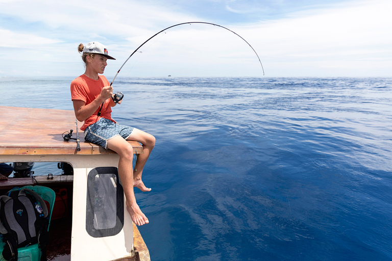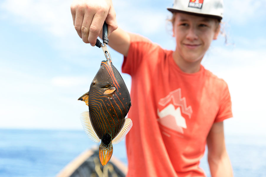Popoldne smo pobegnili nazaj na morje. Do majhnega atola Pasighe, kjer smo poskusili srečo z ribolovom. Ulov ni bil nič posebnega, ampak to sploh ni bilo pomembno. Voda tam… nerealna. Ena najčistejših, kar sem jih kdaj videl. Ko te ujame močan tok, imaš občutek, kot da lebdiš nad koralnimi vrtovi.