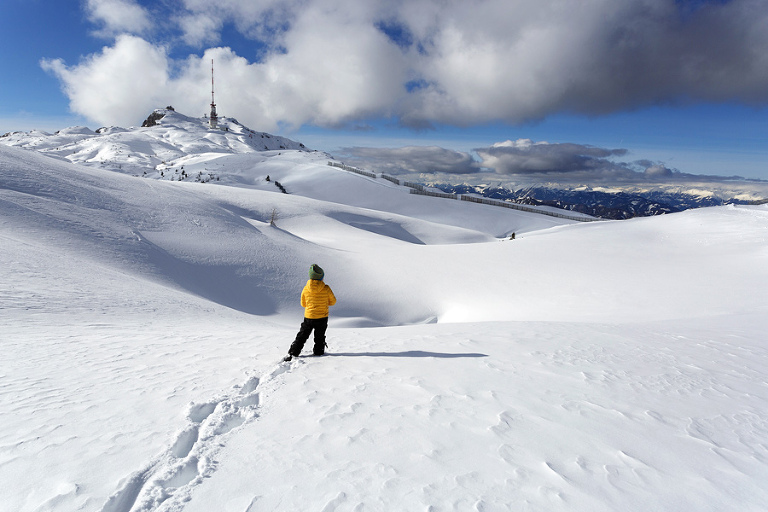 The Dobratsch mountain is now becoming our traditional winter family trip in neighbouring Austria. Despite the fact that it is a simple, an hour and a half long hike, Dobratsch offers with its 2100 meters above sea level unforgettable views to almost all parts of Austria. A winter trip to Dobratsch is even better, because you can combine it with sledding. But this year we were lucky with another thing. In spring you can bath in a wild hot spring just at the foot of the Dobratsch mountain. But this year because of the weather the hot spring was full already now. So, first we hiked to the top, then we enjoyed in winter sledding and we finished our amazing day with a swim in the cool Maibachl hot spring. 🙂