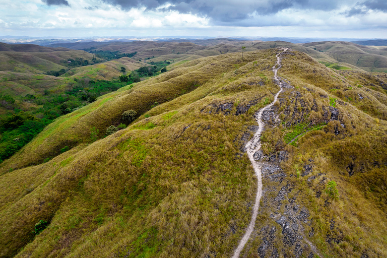Če je zahodni del otoka precej zelen in poraščen, je vzhodni njegov pravi kontrast. Z vsakim kilometrom proti Waingapuju je bilo dreves manj, zadnje kilometre pa smo se vozili skozi prostrano, gričevnato pokrajino, prekrito le z visoko travo. Ta pokrajina je sama po sebi čarobna, a prav poseben pečat ji dajejo divji in poldivji konji, ki svobodno tavajo po njej.