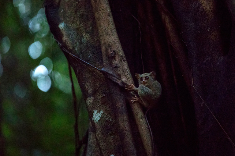 Pri tarsierjih pa ni garancije. Prvi večer sva jih ujela le za bežen trenutek v popolni temi, preden so izginili v gosto zelenje. Malo razočaranja, priznam. A potem – naslednji dan – popoln preobrat. Po čisti sreči smo jih opazili že podnevi, kako so nervozno skakali z veje na vejo, medtem ko jim je za petami sledil velik kuščar. Prizor je bil kot iz dokumentarca, nepozaben.