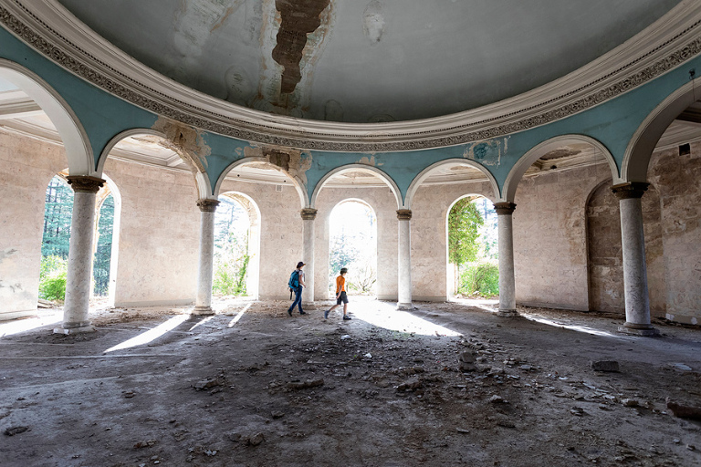 Sem velik ljubitelj Urbexa ali po naše urbanega raziskovanja starih, zapuščenih zgradb in najrazličnejšig kompleksov in ko sem pred našim odhodom v Gruzijo zasledil, da je v tistih koncih tega res veliko, sem v naš program dodal tudi nekaj podobnih krajev. Tskaltubo, simpatično mestece le nekaj kilometrov od mesta Kutaisi, je pravi biser urbanega raziskovanja. Mesto, ki je znano po svojih termalnih vrelcih, je zaslovelo že v 18. stoletju, ko so tam postavili prve termalne bazene. A pravi blišč je dosegel v času sovjetske zveze in v obdobju po drugi svetovni vojni, ko je bil center termalnega turizma Sovjetske zveze. V dvajsetih letih 20. stoletja je ozemlje mesta Tskaltubo pridobila država in ga leta 1931 razglasila za center za zdravljenje zdravstvenih stanj z uporabo mineralne vode. Istega leta naj bi po navodilih doktorja v Moskvi kraj prvič obiskal tudi Stalin – pred njegovim obiskom so zahvaljujoč 4000 delavcem, ki so bili vključeni v projekt, v rekordnem času postavili tri zdravilišča. Stalin naj bi kraj spet obiskal leta 1951, v tistem obdobju pa naj bi imel zasebne prostore v vsaj enem sanatoriju – sanatoriju Ministrstva za obrambo Sovjetske zveze, lastno kopalnico v kopališču št. 6 in celo poletno hišo na bližnjem hribu. Do petdesetih let 20. stoletja je bilo v strogem centru mesta Tskaltubo devet kopališč in centrov dobrega počutja, na njegovem obrobju pa 22 “sovjetskih neoklasicističnih” sanatorijev in hotelov za sprejem gostov. Na svojem vrhuncu je mesto vsako leto obiskalo do 125.000 ljudi iz vse Sovjetske zveze, v mesto pa so iz Moskve vozili celo direktni vlaki. Čeprav je bil Tskaltubo prestižen, ni bil rezerviran le za višje sloje: delavci vseh vrst so obiskovali Tskaltubo v skladu s 119. členom ustave ZSSR (pravica do počitka in prostega časa) – zdravnik je lahko izdal brezplačen bon za zdravljenje, običajno v trajanju 14-21 dni. Ko je decembra 1991 razpadla Sovjetska zveza, je propadla tudi zdraviliška industrija mesta Tskaltubo. Večina stavb je bila zapuščenih, sčasoma pa so bile iz njih odstranjene vse uporabne stvari. V letih 1992-1993 je Tskaltubo našel nov namen kot začasni dom za notranje razseljene osebe, ki so zbežale pred vojno v Abhaziji. V stara zdravilišča se je zateklo med 9.000-12.000 ljudi, danes pa naj bi v zdraviliščih še vedno živelo cca. 500 družin. V letih 2012–2013 so zasebni vlagatelji kupili številne sanatorije in jih preprodali. Leta 2018 se je začel projekt, s katerim naj bi Tskaltubo postal “največja zdraviliška destinacija v vzhodni Evropi”, vendar je bilo od tega bore malo. Noben od 15 sanatorijev v državni lasti ni bil prenovljen, trenutno stanje v tem mestu pa lahko vidite na spodnjih fotografijah.