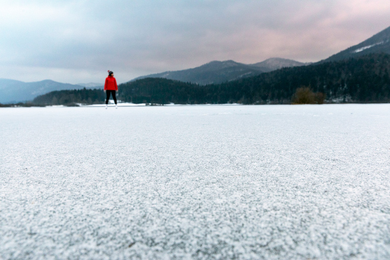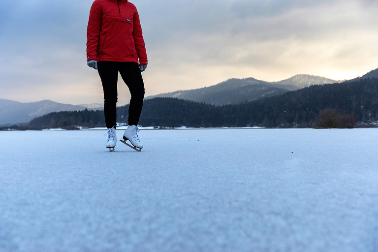 Te dni je Cerkniško jezero še kako aktualno. Temperature so končno postale vsaj malo zimske in zaledenelo oz. zamrznjeno Cerkniško jezero ponuja danes in v naslednjih dneh največjo drsalno ploskev v državi. Včeraj popoldan so bile ob našem obisku razmere res zimske. A ko enkrat natakneš drsalke, je vsak mraz pozabljen. Drsanje po jezerih mi je res nekaj posebnega že od malih nog in vedno z občudovanjem pogledujem k skandinavcem, ki drsajo po le nekaj centimetrov debelih ledenih površinah. Cerkniško jezero te dni ponuja precej varno obliko drsanja v naravi – paziti je treba le na konce, kjer prevladuje trsje in je led najtanjši ter na konce, kjer ledu pač ni. 🙂