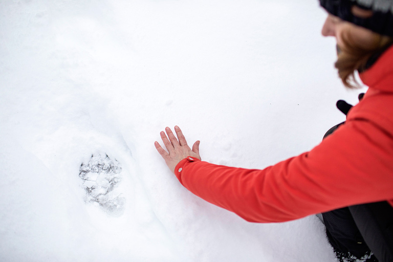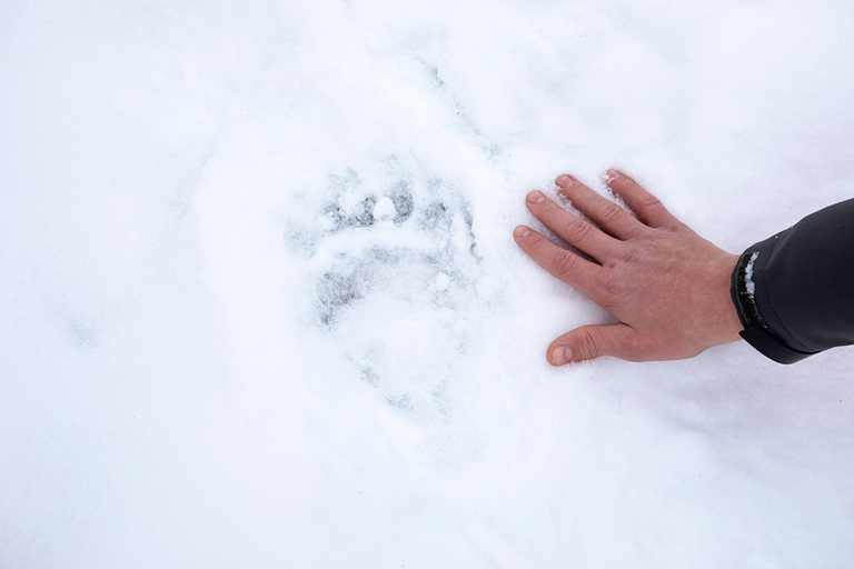 P.S. naslednji dan je bilo treba sledi nujno pokazati še najmlajšemu. In če so bile prve sledi še super, druge tudi (predvsem na začetku), pa je bilo tisto, kar nas je čakalo le nekaj metrov naprej, čisto preveč. Medvedove stopinje so zavile s poti v levo, tam pa lepa majhna jasa obkrožena z velikimi skalami, na sredini pa konkreten dlakav kos jelenjadi. 🙂 🙂 Skratka, čista zimska idila. 🙂