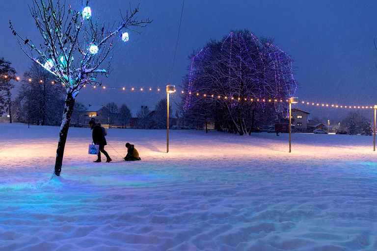 Kljub temu da sem rojen Domžalčan in so mi Domžale všeč (sploh za življenje in vzgajanje otroka), moram biti iskren in priznati, da turistično ne ponujajo ničesar, kar bi posebej privabljalo ljudi. Pot ob Kamniški Bistrici mi je sicer res všeč, o samem centru pa težko povem kaj pametnega. 🙂 A ob obilnem sneženju tudi Domžale dobijo svoj čar in nisem se mogel zadržati, da ob sprehodu spotoma ne bi naredil še nekaj arhivskih fotografij. 🙂
