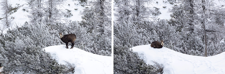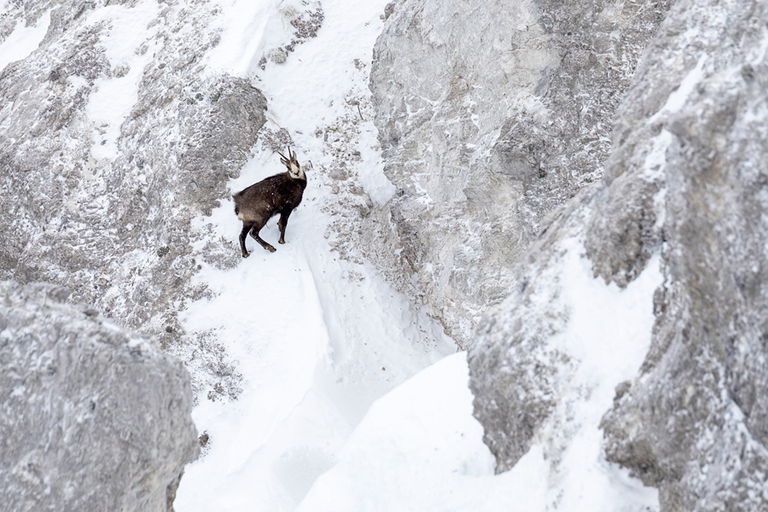 Vršič je bil skoraj povsem prazen. Le občasno se je ustavil kakšen avto, iz katerega so potniki na hitro skočili ven, naredili selfi ali dva in se nato hitro umaknili nazaj na toplo v dolino. No, mi smo se odločili, da v zimskih razmerah skupaj z gamsi uživamo malo dlje in če bo šlo leto 26 v tem stilu tudi naprej, se nimamo ničesar bati. 🙂